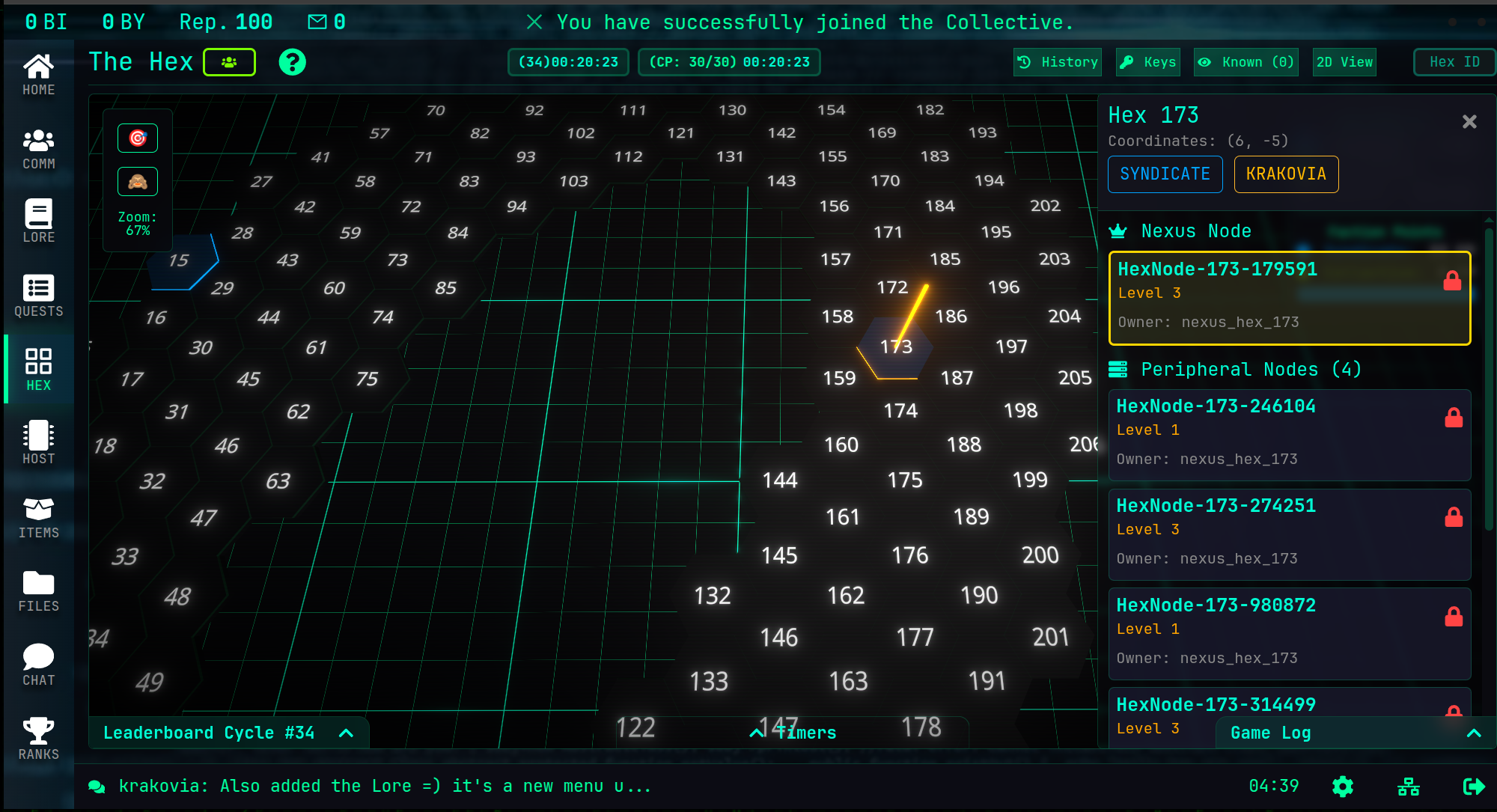 - Hex Conquest: Capture territories by hacking peripheral nodes to lower the shields of the central Nexus Node.