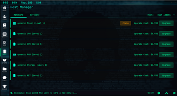 - Economy: Install Miners to generate passive Bits income to fund exponential upgrade costs.